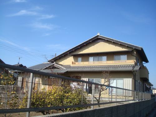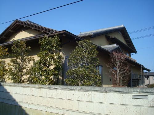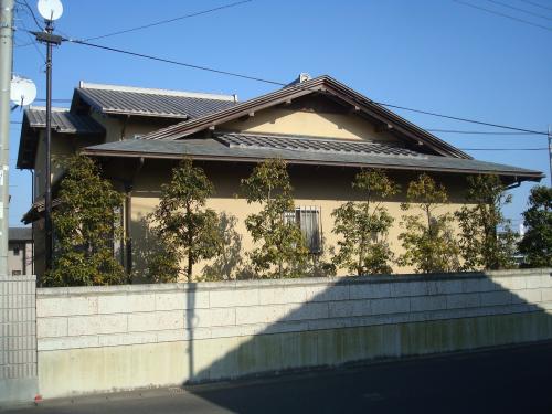 一段下がった東側道路から見た風景。瓦は一文字瓦を葺いています。